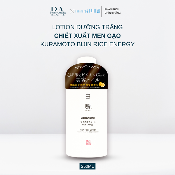 Lotion chiết xuất men gạo dưỡng trắng Kuramoto Bijin Rice Energy Shirokoji Rich Face Lotion